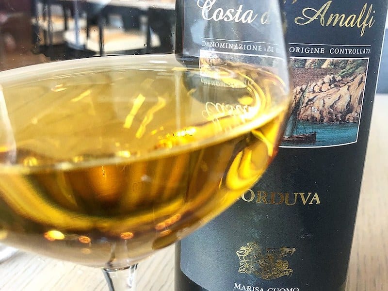 Oggi Furore è lontana centinaia di chilometri, ma proprio come quel sole in una calda giornata estiva sul mare e la fresca carezza della brezza marina, così si sprigionano i colori e i profumi da questo calice di vino. Un calice che sprigiona magia! C’è il mare, e poi il sole e il vento nel calice; la passione sapiente di chi cura queste vigne con amore, rispetto e dedizione; il lavoro di una squadra invisibile eppure magistrale che riesce a tirare fuori un capolavoro da una terra bellissima, impossibile ed estrema; i profumi di un terroir unico e irripetibile che, lungo i viottoli di questa campagna a picco sul mare, riempiono l’aria in una sinfonia di note di fiori sbocciati al mattino, di erba fresca ma arsa dal sole, di frutta estiva matura sugli alberi, dei limoni unici della Costiera, e del mare che ti entra dentro nel profondo anche da quassù, mentre due farfalle leggiadre e impalpabili ricamano disegni invisibili in volo nella vigna dove crescono questi grappoli dolci come il miele.