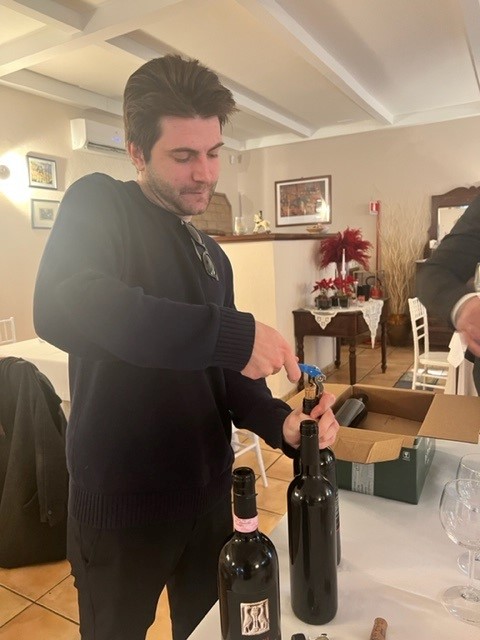 E ci siamo divertiti a giocare col Tempo Giuseppe ed io, attraverso gli assaggi in una super verticale tra futuro, presente e passato, esattamente in quest’ordine. Il futuro prossimo del Taurasi 2017 stupisce per eleganza e profondità di naso e di sorso; il futuro anteriore del 2019 scalpita con esuberanza tra frutta croccante e spezie esotiche; il passato prossimo del Taurasi 2008, evoluto e maturo scivola con eleganza lungo la sua parabola discendente; ed è molto più passato del passato anteriore del Taurasi 2003 che stupisce con la sua giovanile freschezza e spiccata sapidità! E la cosa più incredibile è che è tutto qui! Adesso! Per molti ma non per tutti! Per quelli che vorranno andare a Fontanarosa e lasciarsi condurre da Giuseppe in questo esperimento di fisica quantistica dove tutto è, è sempre stato, e sarà sempre.