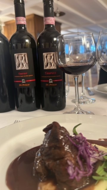 Ad accogliermi trovo il giovane Giuseppe, quarta, quinta sesta generazione poco importa, i Di Prisco sono qui da sempre. Giuseppe ha gli occhi limpidi e una eleganza innata che va ben oltre i suoi modi garbati e il look raffinato di oggi. Mi saluta con un bel sorriso e comincia il suo racconto tra passato, presente e futuro. Tanti progetti, tanto entusiasmo e tanto amore per le tradizioni di questa sua terra bellissima e suggestiva. Qui siamo a Fontanarosa, a pochi chilometri da Taurasi, nel cuore dell’Irpinia. Giuseppe mi spiega il paesaggio, i monti, la storia ed io resto incantata e senza parole. Quando è il cuore a parlare il silenzio agevola l’ascolto.