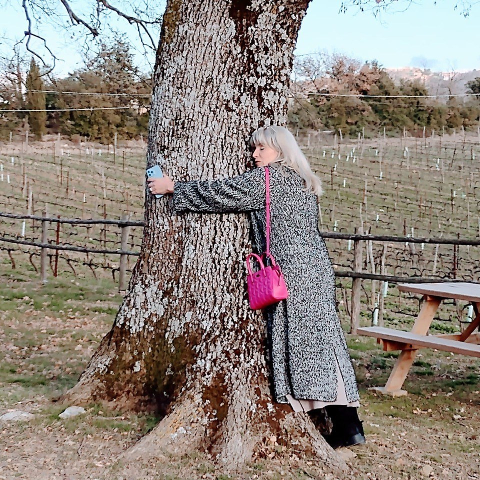 C’è un’enorme Quercia che vigila sui vigneti di Sanlorenzo da uno dei punti più alti del Podere, e che custodisce dentro di sé la linea di sangue e tutta l’Anima di questo posto incantato. Il mio primo abbraccio ogni qual volta capito da quelle parti è sempre per Lei; spesso mi siedo nella sua ombra a fare quattro chiacchiere in silenzio, le confido i miei segreti, e mi lascio coccolare dalle sue vibrazioni così positive e rassicuranti mentre mi godo il panorama mozzafiato da questo angolo di paradiso. A volte non lo avverto nemmeno Luciano che sono arrivata e me ne resto lì anche per una buona mezz’ora, tanto lo so che prima o poi lui sbuca da qualche parte risalendo dalla vigna.