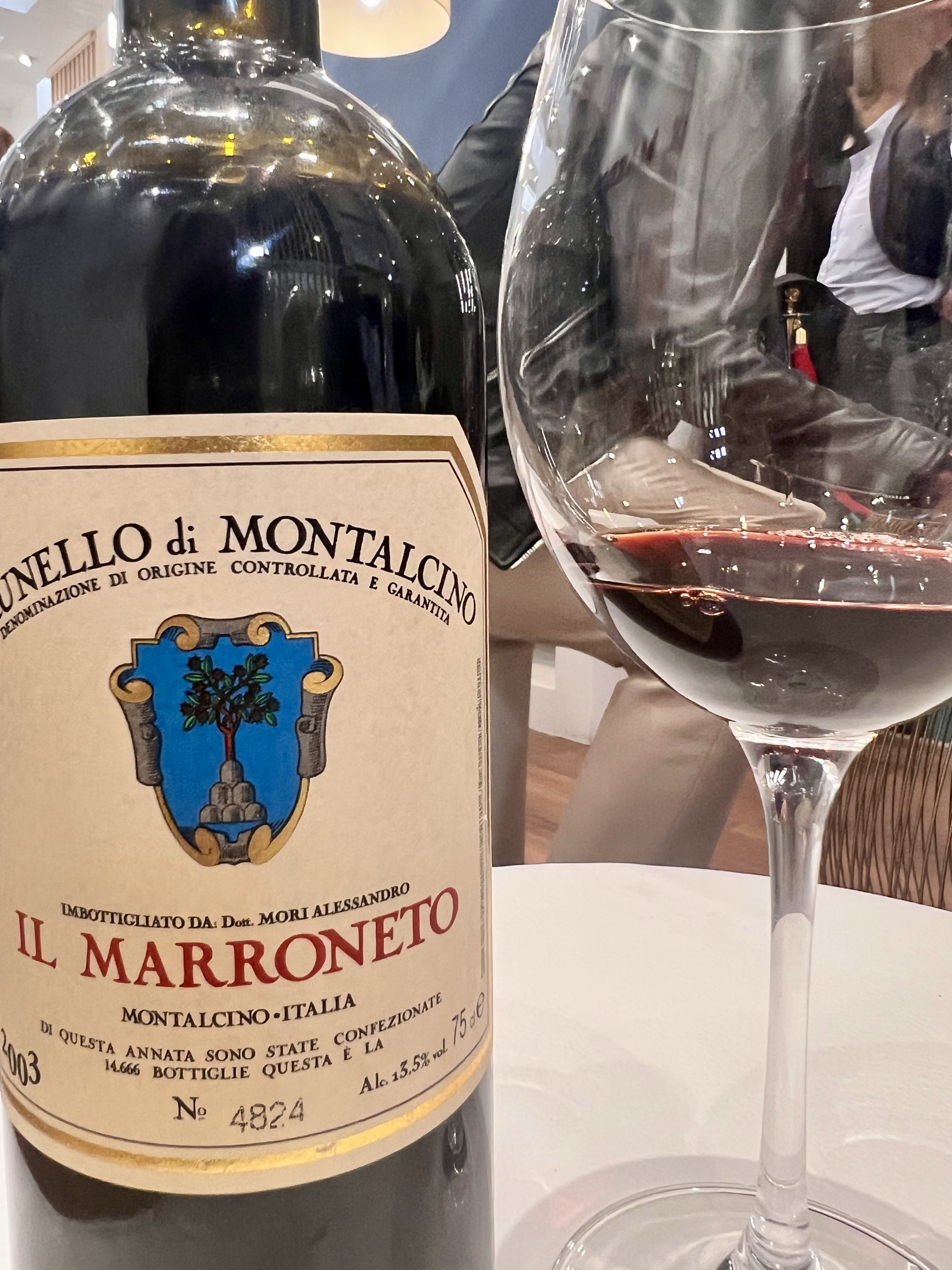 Una bottiglia più unica che rara questo Brunello di Montalcino DOCG Il Marroneto 2003. Perché parlarne allora? In primo luogo, per condividere un’emozione, poi perché se doveste imbattervi in lei non esitereste ad aprila: ha davvero tanto da raccontare. Infine, per fornire qualche elemento utile agli appassionati di vecchie annate che ancora si interrogano sul potenziale di invecchiamento del Brunello.