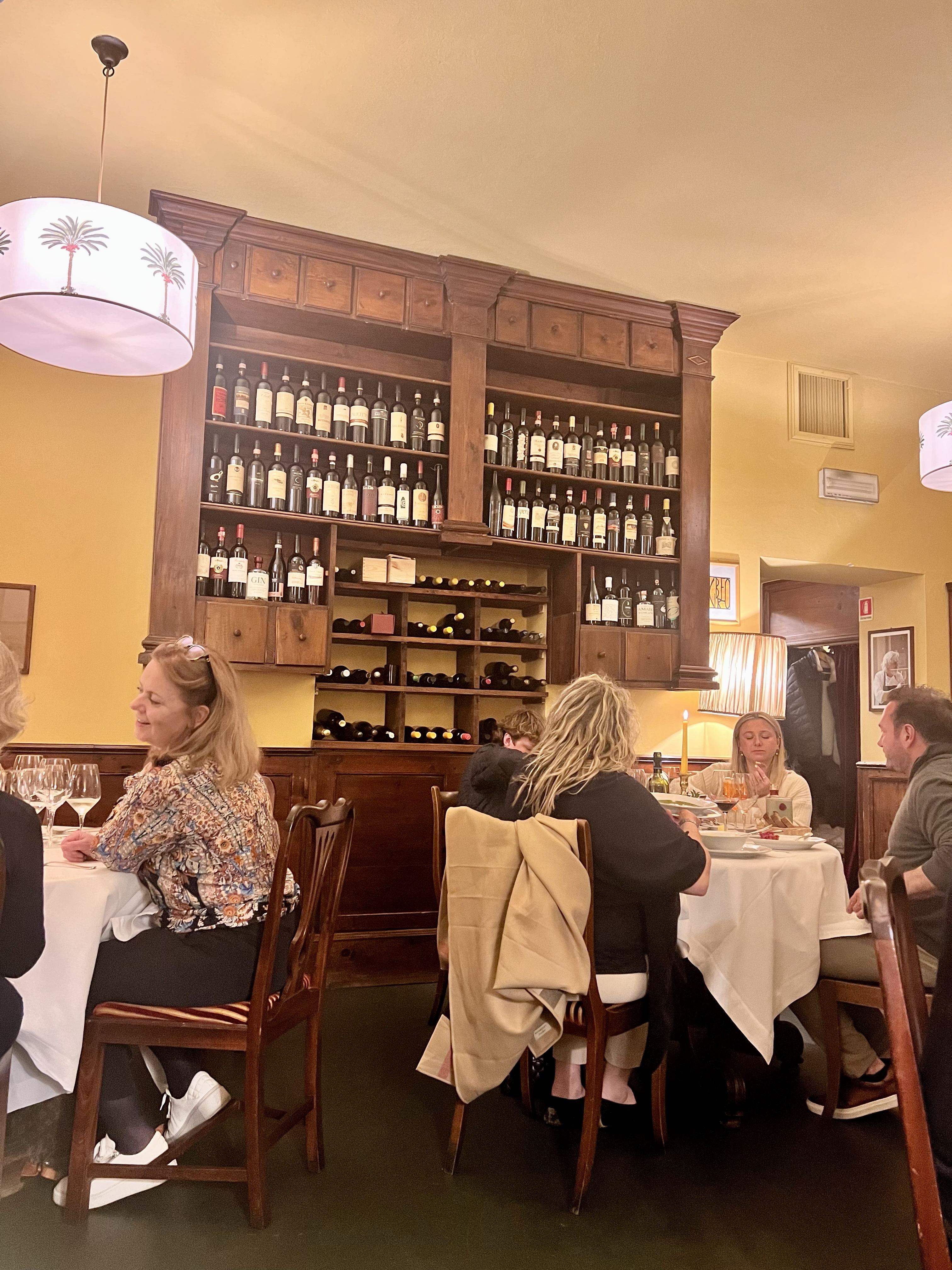The room bathes in a warm saffron glow reminiscent of some tea-dance twenties, casting a nostalgic ambiance. Each table hosts a flickering candle, heightening the intimacy that envelops the space. Our table, strategically positioned to command the entire room, seems almost serendipitously familiar – the same spot as the previous visit. It is a cherished spot for my friend Dom, a loyal patron from California, while I, arriving from Rome, am admittedly experiencing this for the first time, feeling a twinge of self-consciousness.