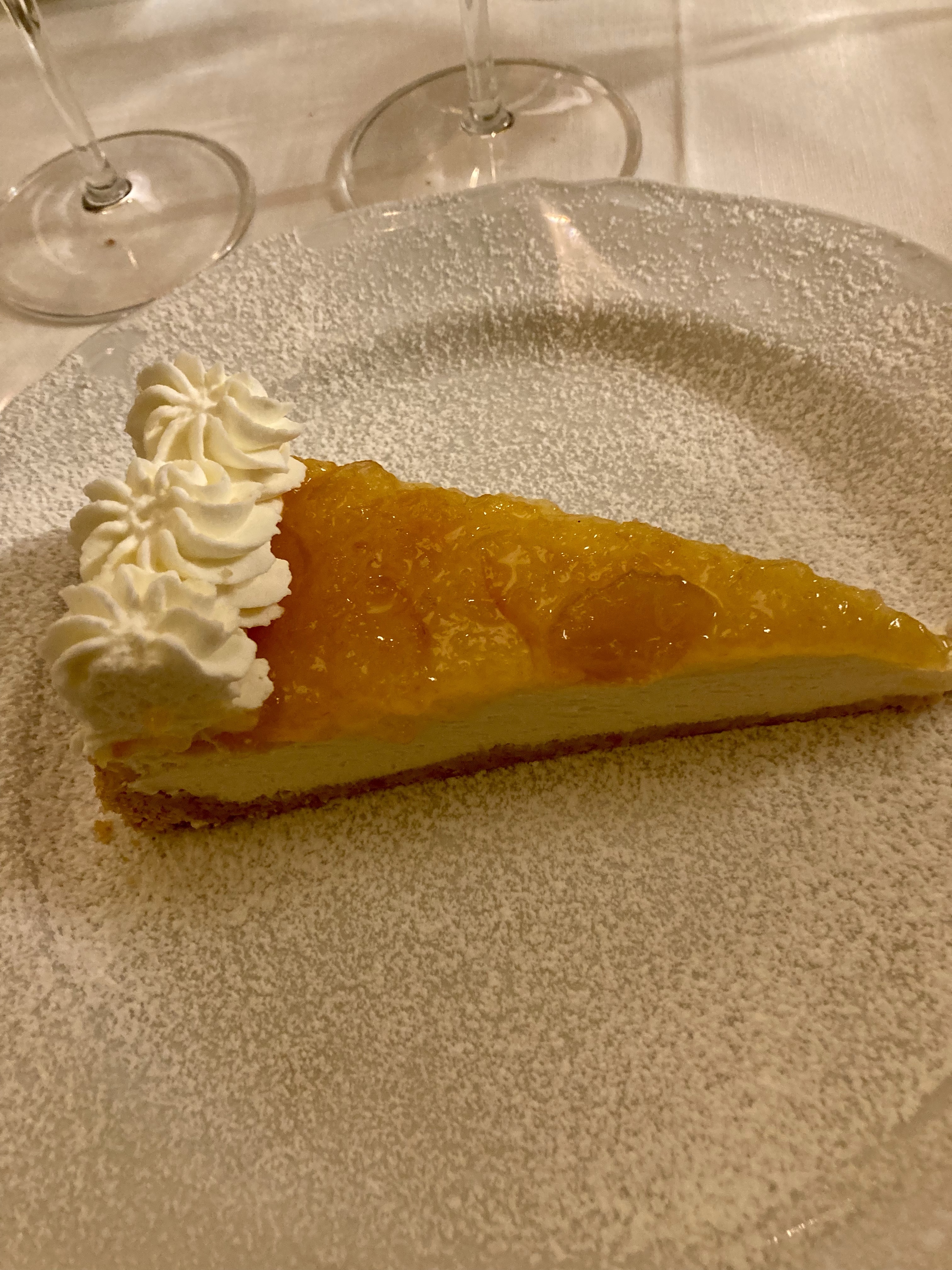 Dessert beckoned, a moment I typically resist as I am not too fond of sweets. However, unwilling to bid farewell to this enchanting evening, I succumbed to the appeal of the flourless chocolate cake – a luscious, creamy embrace so exquisite that I momentarily forgot to capture it in a photograph! Equally delightful was Dom’s choice, a ricotta and orange cake that added a harmonious final note to our culinary symphony.